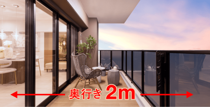 ■奥行き2mのワイドバルコニー